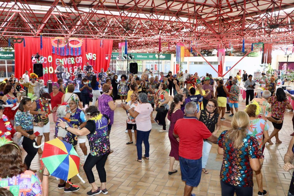 folia tomou conta do Centro Estadual de Convivência do Idoso (Ceci) Aparecida. Na tarde desta sexta-feira (10/02), idosos, adultos e crianças vestiram suas fantasias e participaram do bloco ‘Enverga Mas Não Quebra’.
