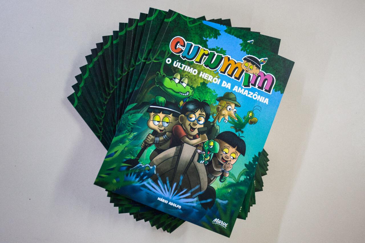 Neste mês, o jornalista Mário Adolfo lança o livro “Curumim – O Último Herói da Amazônia”, contemplado no Prêmio Feliciano Lana. A publicação traz a trajetória do personagem que é Patrimônio Cultural de Natureza Imaterial do Estado do Amazonas, com momentos importantes como o lançamento da cartilha educativa sobre a História do Amazonas, na Suécia, em 1988, e a participação na primeira edição da Bienal do Livro do Amazonas, em 2012, com a obra “Curumim conta a história do Livro”.