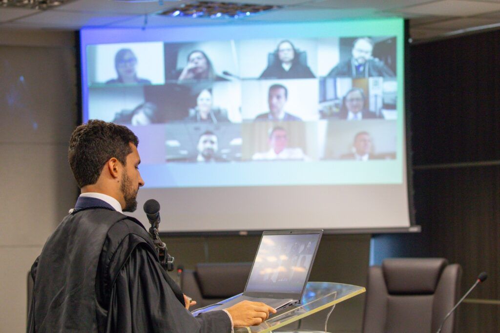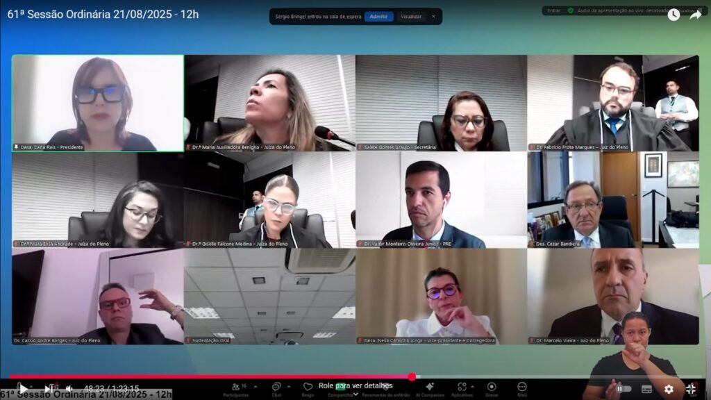 Nesta quinta-feira (21), o desembargador Cezar Bandieira despediu-se do Tribunal Regional Eleitoral do Amazonas (TRE-AM) durante sessão do Pleno, participando por videoconferência. O magistrado, que atuou como membro substituto da Corte Eleitoral ao longo do biênio, foi homenageado pelos demais integrantes e por advogados presentes.