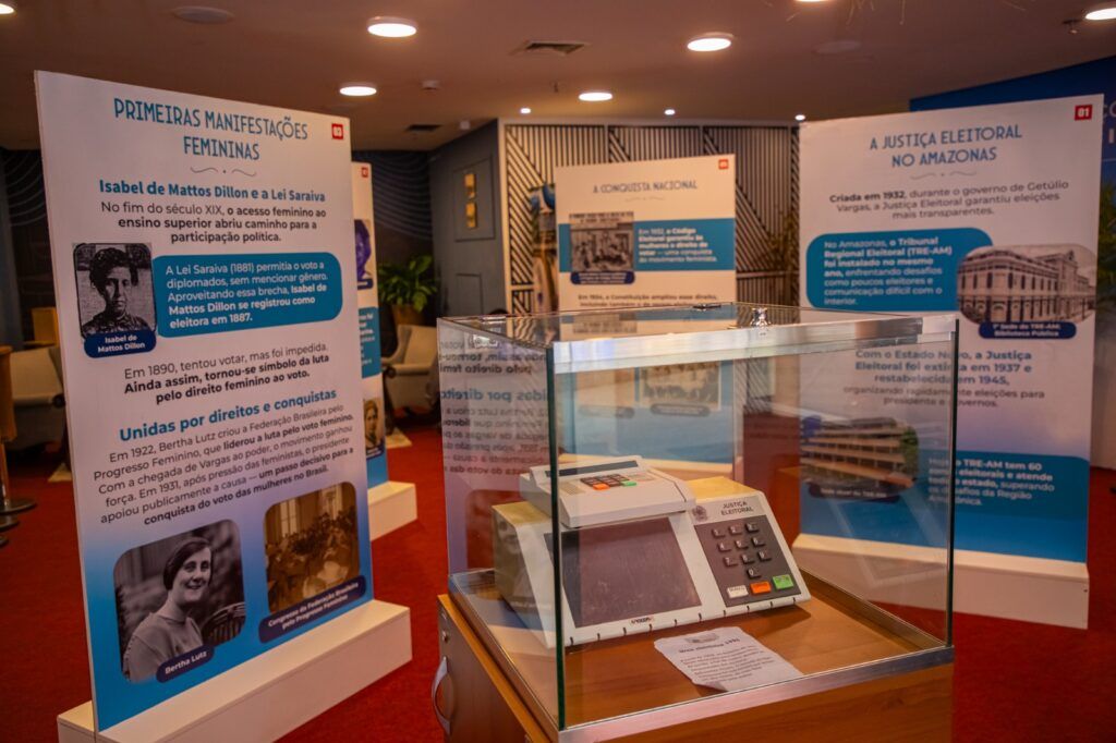 Com mais de 800 visitantes, a exposição “93 anos do Tribunal Regional Eleitoral do Amazonas (TRE-AM) e da conquista do Voto Feminino” foi encerrada na última sexta-feira (29) no Amazonas Shopping. Ao longo de cinco dias, a mostra reuniu elementos históricos da Justiça Eleitoral, cultura regional e atividades interativas.