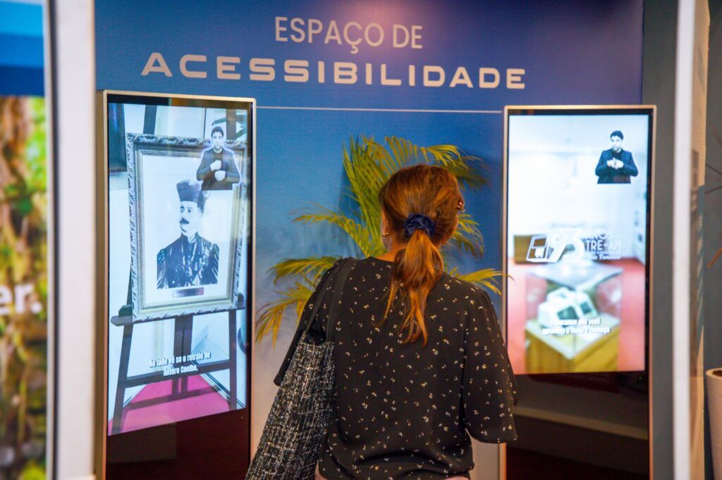 No espaço Acessibilidade, os visitantes tiveram à disposição um vídeo autodescritivo sobre a mostra e o atendimento de intérprete de Libras durante todo o funcionamento.