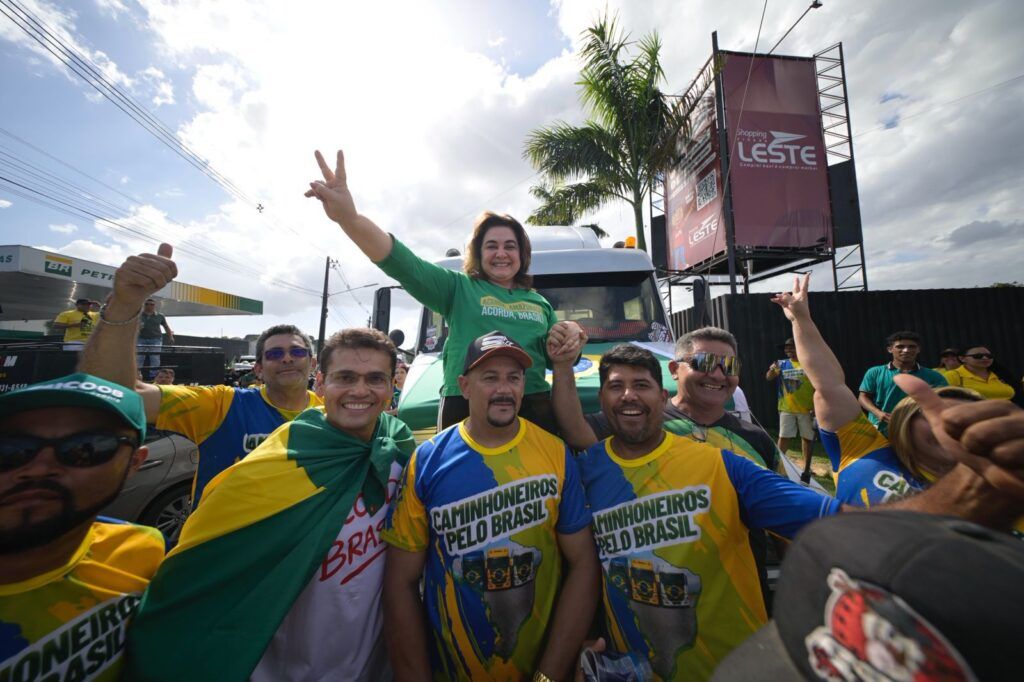Antes do grande evento na Ponta Negra, a pré-candidata participou da mobilização feita por caminhoneiros e motociclistas, que saiu da avenida Governador José Lindoso, mais conhecida como avenida das Torres, zona Norte, até o local do evento na zona Oeste.