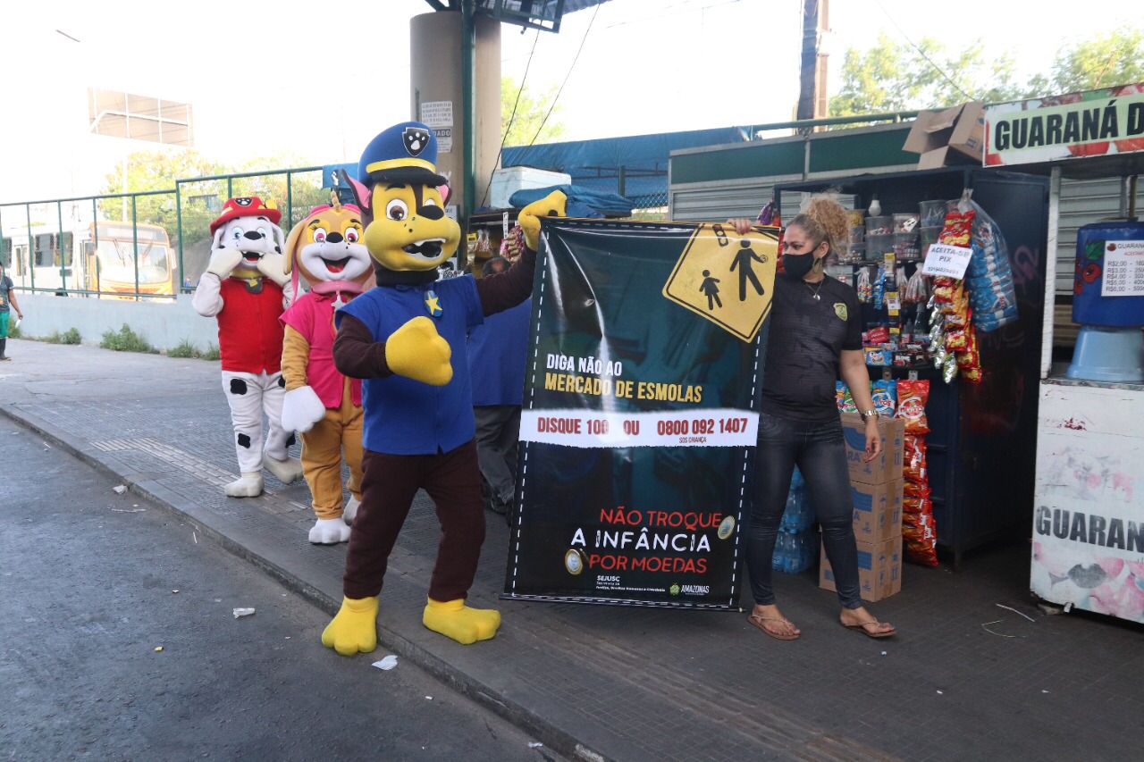 Para intensificar e conscientizar a população sobre a mendicância infantojuvenil, a Secretaria de Justiça, Direitos Humanos e Cidadania (Sejusc), por meio da Secretaria Executiva de Direitos da Criança e Adolescente (Sedca), continua com a campanha “Não troque a infância por moedas” nos shoppings e terminais de integração de Manaus.