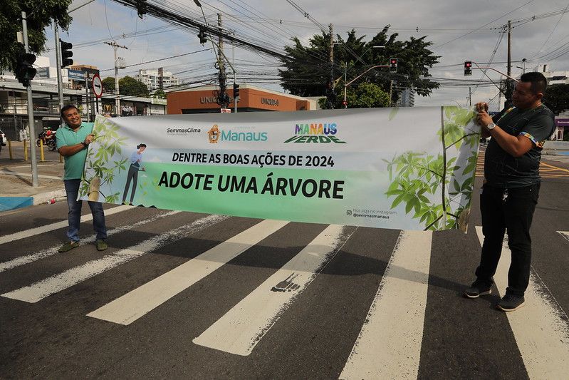 A Prefeitura de Manaus, por meio da Secretaria Municipal de Meio Ambiente, Sustentabilidade e Mudança do Clima (Semmasclima), realizou a última ação de distribuição itinerante de mudas de plantas, na manhã da sexta-feira (29), no cruzamento das avenidas André Araújo e Jornalista Umberto Calderaro Filho, ao lado do fórum Ministro Henoch Reis, bairro Aleixo, zona Centro-Sul. A campanha intitulada “Dentre as boas ações de 2024, adote uma árvore” visa estimular a participação da população no plantio de árvores em seus quintais.
