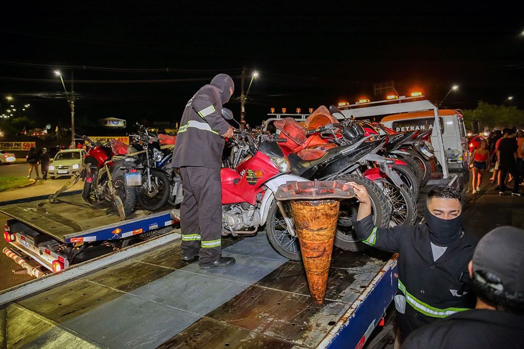 Diante da informação, a equipe de operação conseguiu identificar, autuar e remover 18 motocicletas pela infração de utilizar veículo para demonstrar ou exibir manobra perigosa e por licenciamento em atraso.