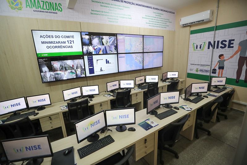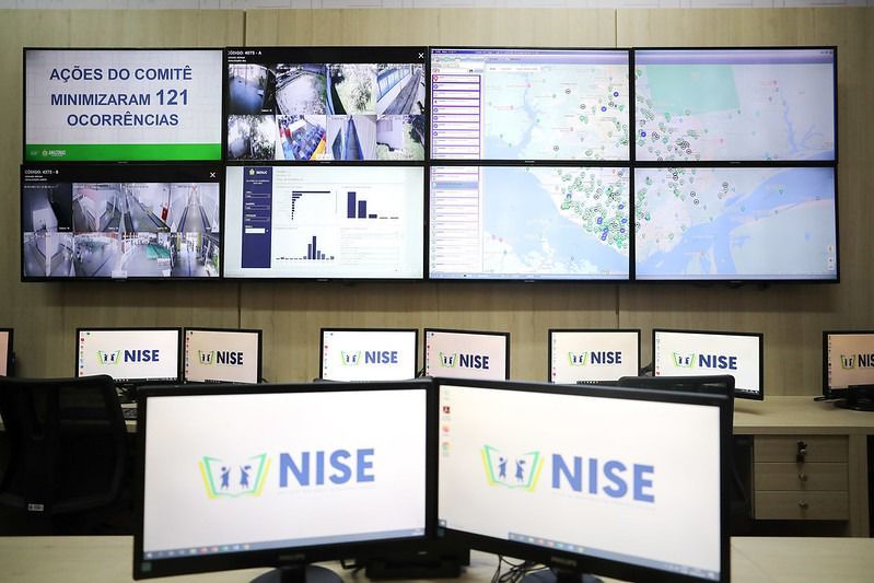 A sala de monitoramento do Núcleo de Inteligência e Segurança Escolar (Nise), instalada na Secretaria de Estado de Educação e Desporto, na zona Sul de Manaus é um espaço que reúne as equipes técnicas e operacionais das Secretarias de Educação e de Segurança Pública (SSP-AM), que atuam no monitoramento e prevenção de ameaças às unidades escolares, através de geoprocessamento, a fim de identificar e mapear as regiões e zonas críticas.