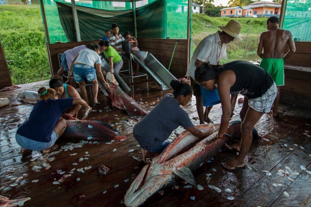 “Unindo conhecimentos tradicionais, ciência e empreendedorismo, os ribeirinhos transformaram o Araipama gigas, nome científico do Pirarucu, que deu origem ao nome do livro, em um símbolo de desenvolvimento sustentável, renda e qualidade de vida para os povos da floresta. O conhecimento tradicional permite que eles aproveitem da carne às escamas do peixe, que são usadas, por exemplo, como lixa de unha ou itens de artesanato”, afirma o fotógrafo. “O manejo do pirarucu também ensinou sobre organização comunitária. Divididos por competência, os ribeirinhos gerenciam praticamente toda a cadeia de produção, desde a fiscalização dos lagos durante o período de reprodução dos peixes até a venda, passando pela pesca, limpeza e processamento do pescado, trabalho que envolve homens, mulheres e jovens, sempre atentos às normas legais, ambientais e sanitárias”.