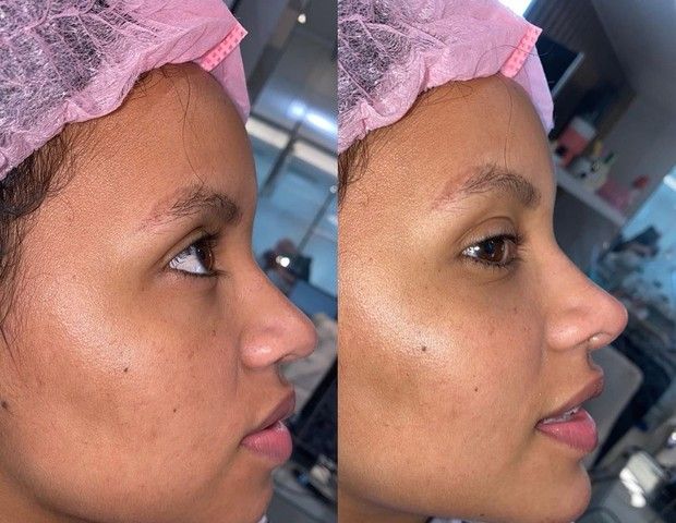 “Muita gente perguntando sobre o procedimento da Gleici Damasceno. Na segunda foto foi logo apo?s a harmonizac?a?o facial! (preenchimento no mento e rinomodelac?a?o). Alguém achou que mudou muito?”, questionou a profissional.