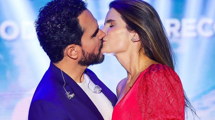 Luciano Camargo gravou neste final de semana, um especial de fim de ano, focado em seu projeto de música gospel. Durante as filmagens, ele chorou e teve companhia da mulher, Flávia Fonseca. Flávia aparece beijando o marido e limpando o suor de Luciano durante a gravação do especial em estúdio no Tatuapé, zona leste da cidade de São Paulo.