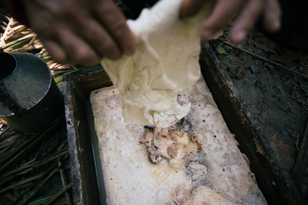 A extração do látex é feita no segundo semestre, na temporada seca. Já a safra da castanha, ao contrário, ocorre no período chuvoso. “Muitos extrativistas não têm noção da importância do que eles fazem ao manter a floresta de pé”, frisa Francisco Leandro do Nascimento Araújo, presidente da ASPAC (Associação dos Produtores Agroextrativistas de Canutama). “Hoje, com essa retomada, a borracha é o produto mais rentável. Tem seringueiro que tira dois salários-mínimos por mês”. O valor é maior do que a renda média dos trabalhadores formais de Canutama, que é de 1,4 salário-mínimo, de acordo com o Instituto Brasileiro de Geografia e Estatística (IBGE).