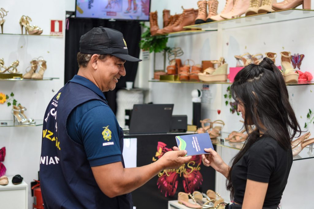 Para melhor atender ao consumidor amazonense, a equipe de fiscalização do Procon-AM visitou o comércio da zona Leste, em caráter educativo, os fiscais entregaram panfletos informativos aos consumidores e CDCs aos comerciantes, além de fiscalizar se as placas obrigatórias do Procon estão visíveis nas lojas, contendo os números telefônicos e endereço para denúncia do Procon-AM visível para todos os consumidores.