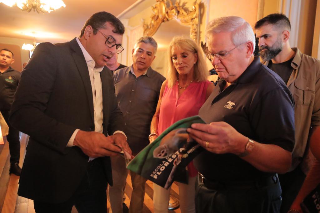 Entre os integrantes da comitiva americana estão os senadores Bob Menendez e Tim Kaine; o deputado Tony Cárdenas; e a embaixadora dos EUA no Brasil, Elizabeth Frawley Bagley. Junto ao governador Wilson Lima, estiveram os secretários de Meio Ambiente, Eduardo Taveira, e de Cultura e Economia Criativa, Marcos Apolo.