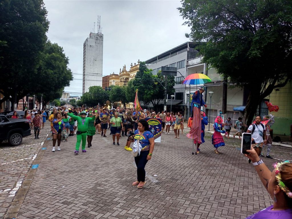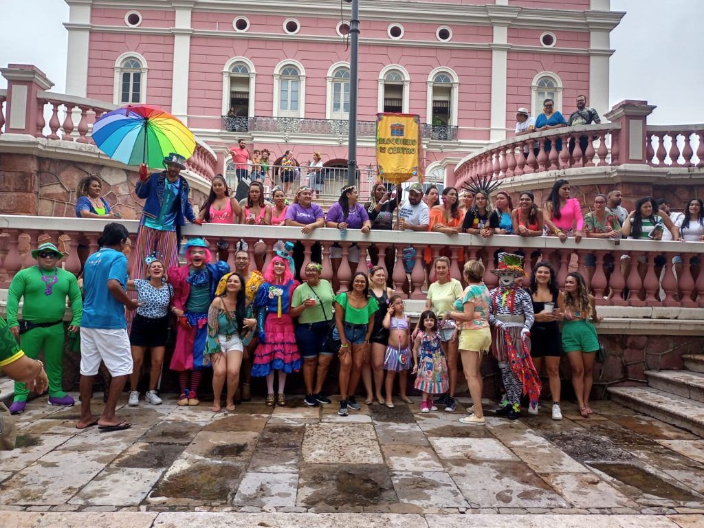 Neste domingo (5) o ‘Bloquinho do Centro’ arrastou foliões em um tradicional cortejo de carnaval, com início no Teatro Amazonas. A folia começou animada, pouco depois das 16h a banda Rosivaldo e os Metais de Olinda fez crianças e adultos pularem carnaval ao som das clássicas marchinhas pelas ruas do centro da cidade até o seu destino, a Casa Luppi, na rua Ferreira Pena.