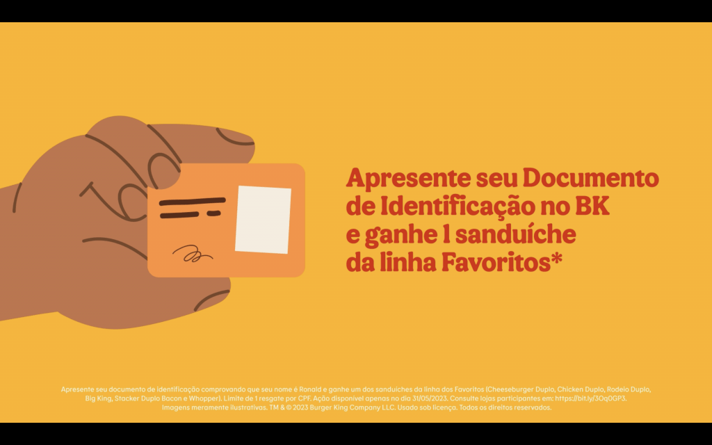 A campanha, desenvolvida pela agência David, será composta por um filme bem-humorado dizendo que no Burger King® todo Ronald é bem-vindo. O vídeo será divulgado nas redes sociais da marca. As lojas participantes da ação estão disponíveis em: https://bit.ly/3Oq0GP3.