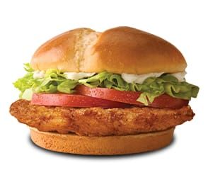 McCrispy Chicken Spicy Deluxe: Pão tipo brioche com batata, molho de pimenta (somente na coroa do pão), alface, tomate e carne 100% peito de frango temperada e empanada