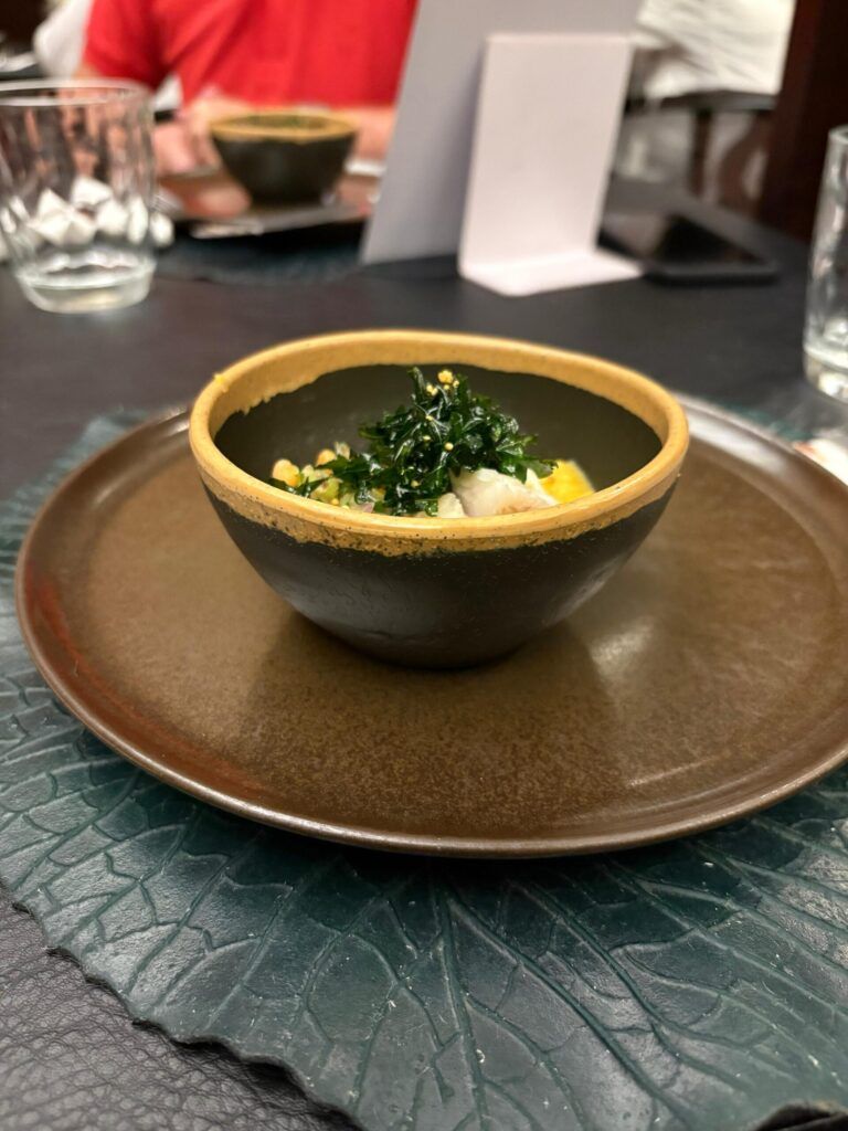 Ventrecha de pirarucu na brasa, molho Thai com especiarias amazônicas e cuscuz de uarini com castanhas do Pará