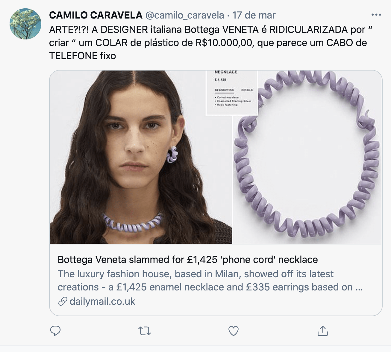 Conhecida por conta dos anos investidos na criação de luxuosos acessórios confeccionados em couro, a Bottega Veneta, fundada em 1966, é uma das principais marcas de luxo tanto no cenário italiano quanto no internacional. Essa mesma bottega foi alvo de duras críticas na internet e até mesmo zoações depois do último lançamento de peças que lembram os fios de telefone fixo das casas das nossas avós – tudo por aquele precinho de produto importado, é claro.