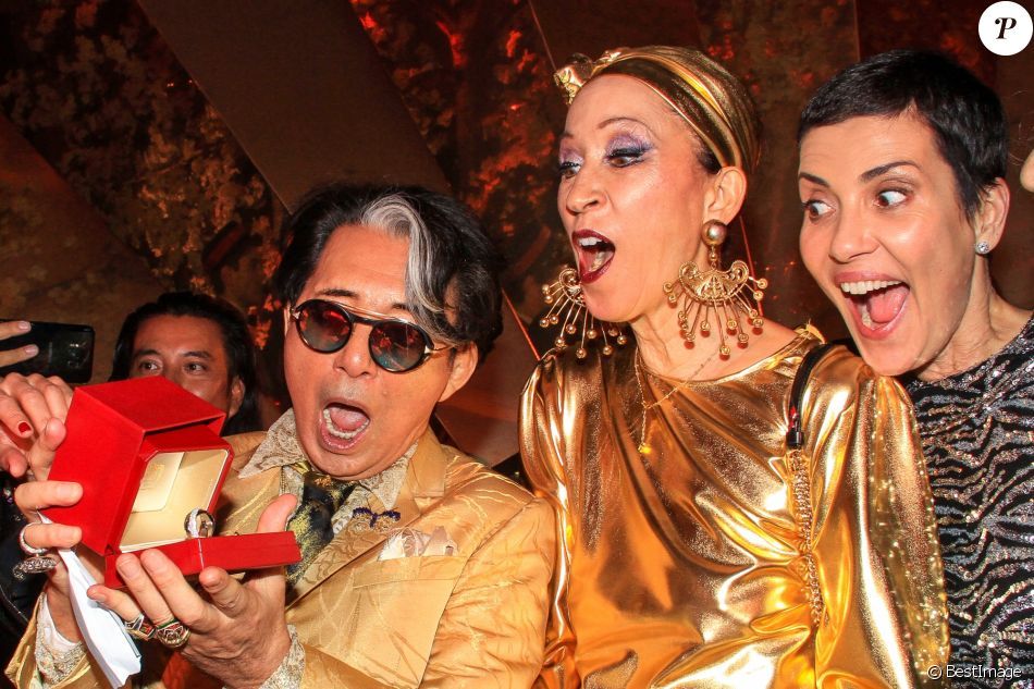 Kenzo Takada, Pat Cleveland e Cristina Cordula na festa de 80 anos do estilista. Paris, 2019 (Foto: Bestimage, Purepeople)