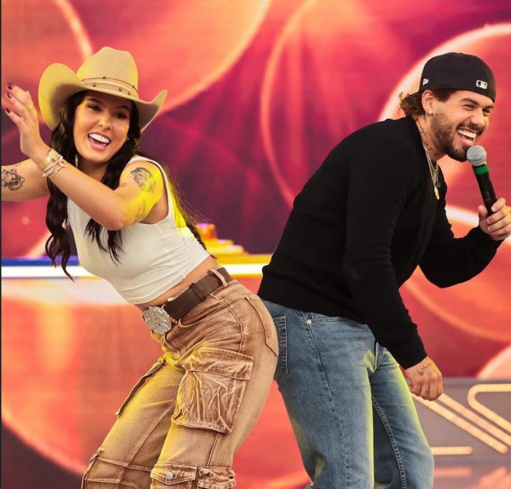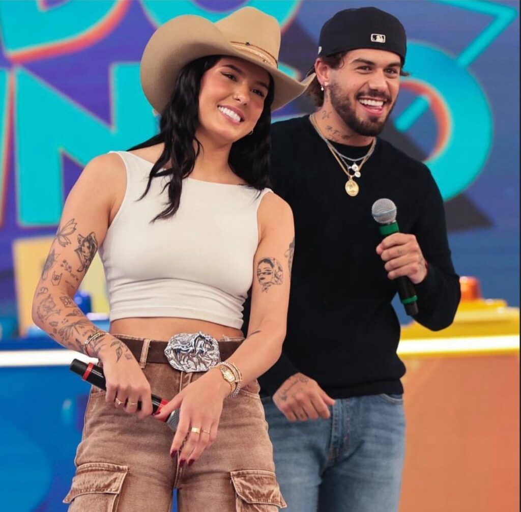 Ana Castela e Zé Felipe protagonizam momento romântico nas gravações do “Domingo Legal”