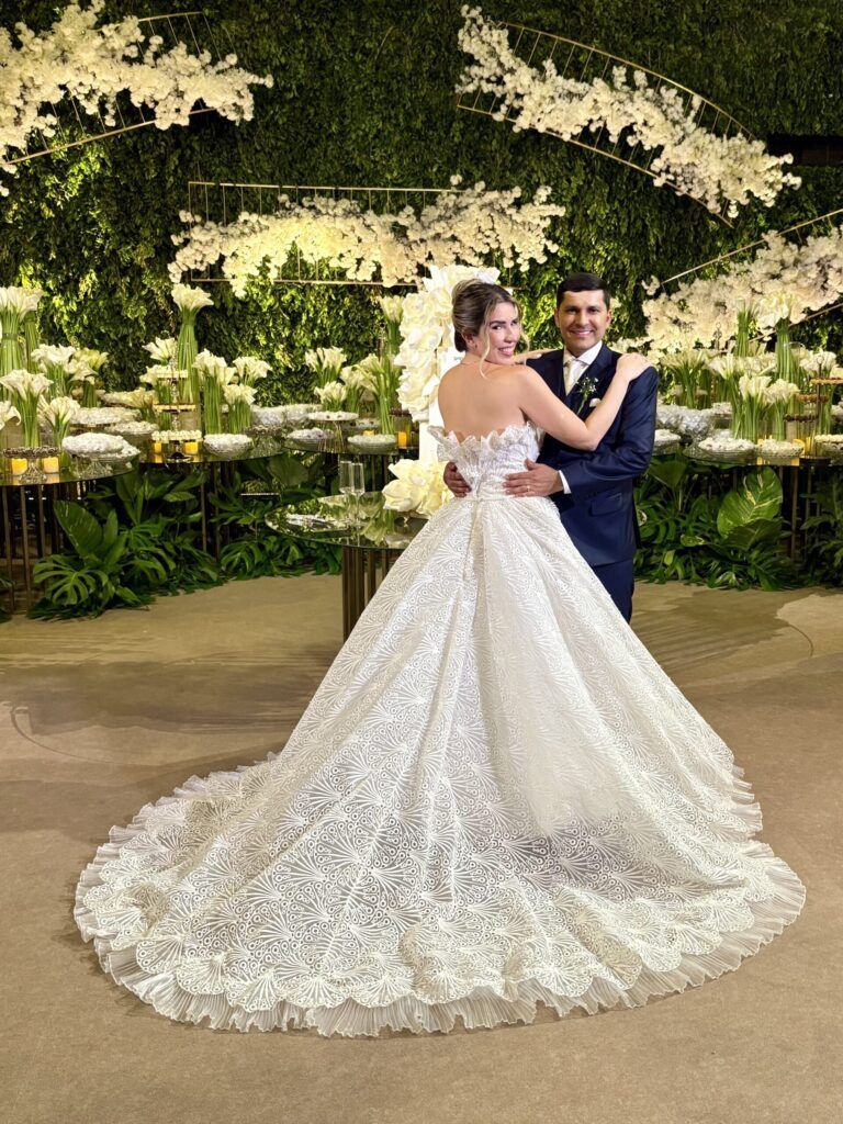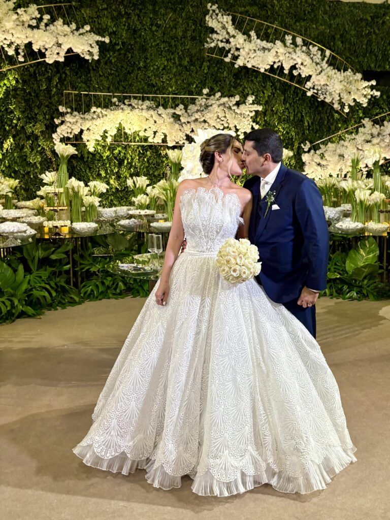 Fúllvio Pinto e Teresa Raquel Lins Rodrigues Baima Rabelo encantaram família e amigos com uma bela celebração do amor no templo da sofisticação Diamond Center. Arranjos em lírios brancos ornavam todos os espaços, um belo cenário criado pela arquiteta que arquiteta a felicidade, Fabiana Bandeira de Melo, com a tradução ímpar do Bandeirão. Extasiante! O cerimonial impecável de Yelza Câmara. Os convivas livres escolhiam desde onde sentar à mesa, às entradas e aos vinhos maravilhosos. Os recém-casados dançaram com os filhos e assim descontrairam o ambiente e os convidados. Uma noite perfeita onde o amor e a alegria estavam no ar. Vida longa ao casal Teresa Raquel e Fúllvio!