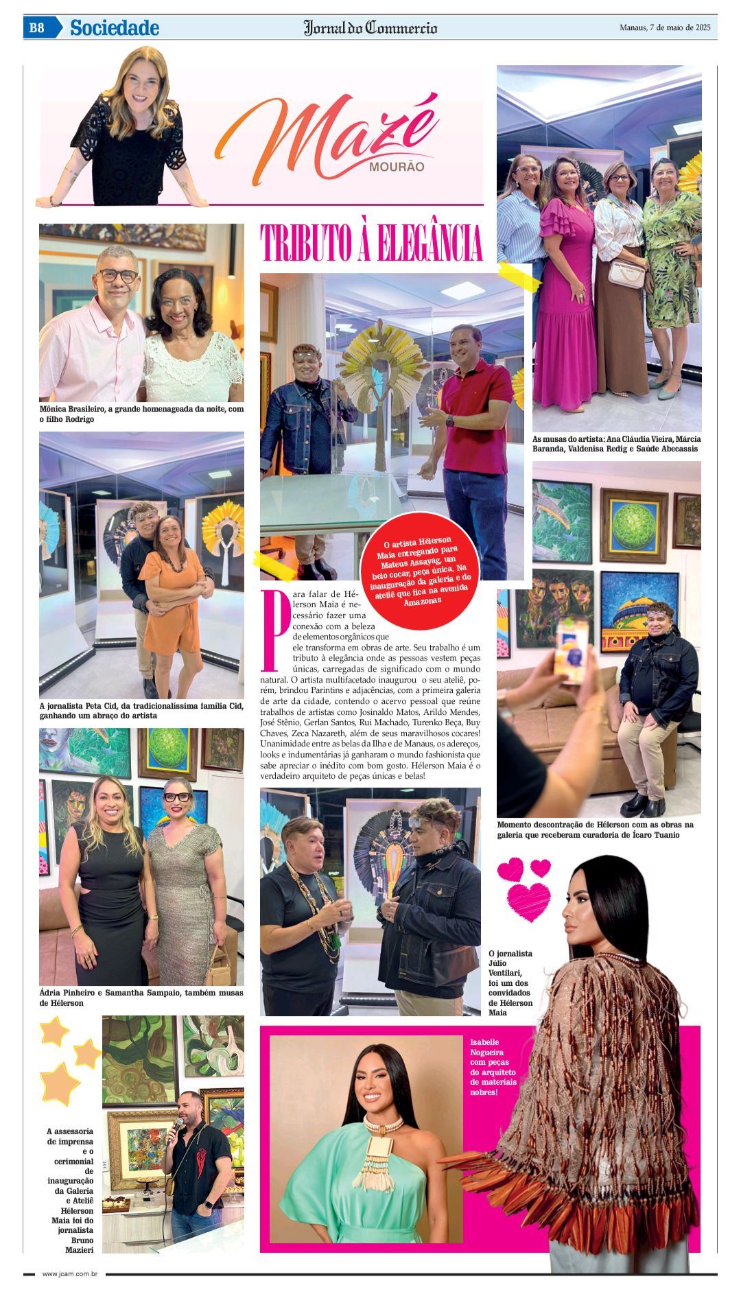 Para falar de Hélerson Maia é necessário fazer uma conexão com a beleza de elementos orgânicos que ele transforma em obras de arte. Seu trabalho é um tributo à elegância onde as pessoas vestem peças únicas, carregadas de significado com o mundo natural. O artista multifacetado inaugurou o seu ateliê, porém, brindou Parintins e adjacências, com a primeira galeria de arte da cidade, contendo o acervo pessoal que reúne trabalhos de artistas como Josinaldo Matos, Arildo Mendes, José Stênio, Gerlan Santos, Rui Machado, Turenko Beça, Buy Chaves, Zeca Nazareth, além de seus maravilhosos cocares! Unanimidade entre as belas da Ilha e de Manaus, os adereços, looks e indumentárias já ganharam o mundo fashionista que sabe apreciar o inédito com bom gosto. Hélerson Maia é o verdadeiro arquiteto de peças únicas e belas!