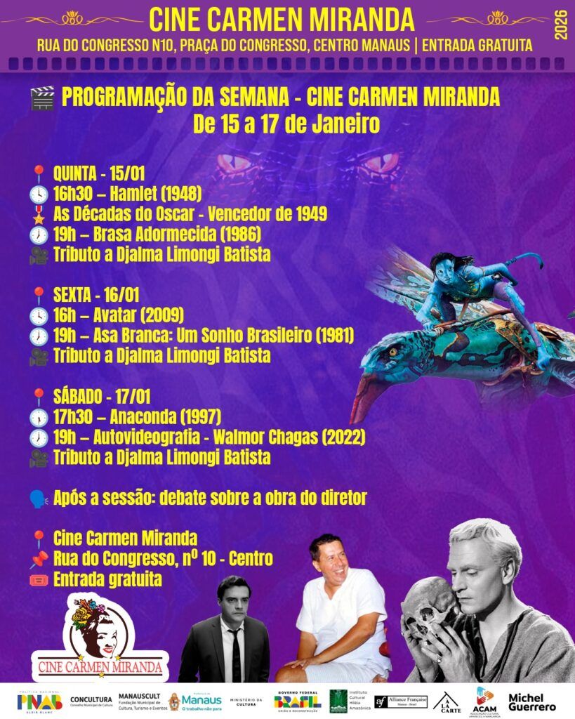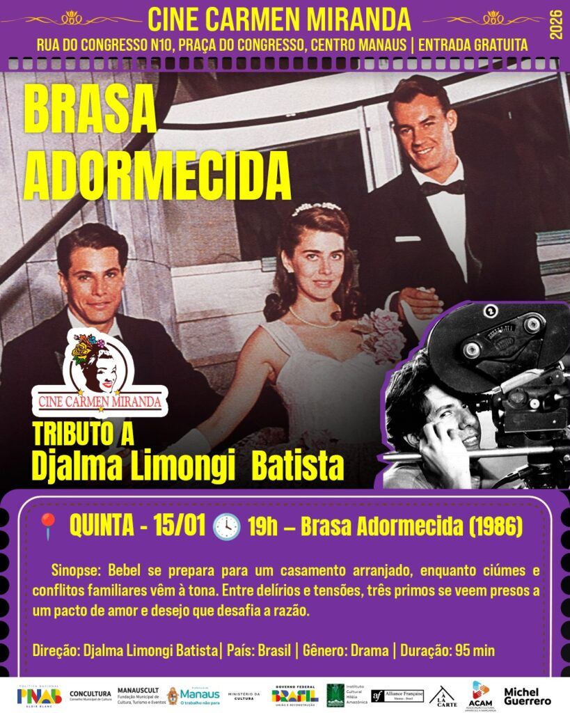 Perto de completar dois anos de sua partida, o cineasta amazonense Djalma Limongi Batista ganha tributo com três de suas obras audiovisuais no Cine Carmen Miranda, de quinta a sábado (15 a 17), sempre às 19h. Na quinta (15), tem ‘Brasa Adormecida’ (1986), com Maitê Proença, Edson Celulari e Paulo César Grande. Seu filme mais premiado ‘Asa Branca – Um sonho brasileiro’, com Edson Celulari e Eva Wilma, será exibido na sexta-feira (16).
