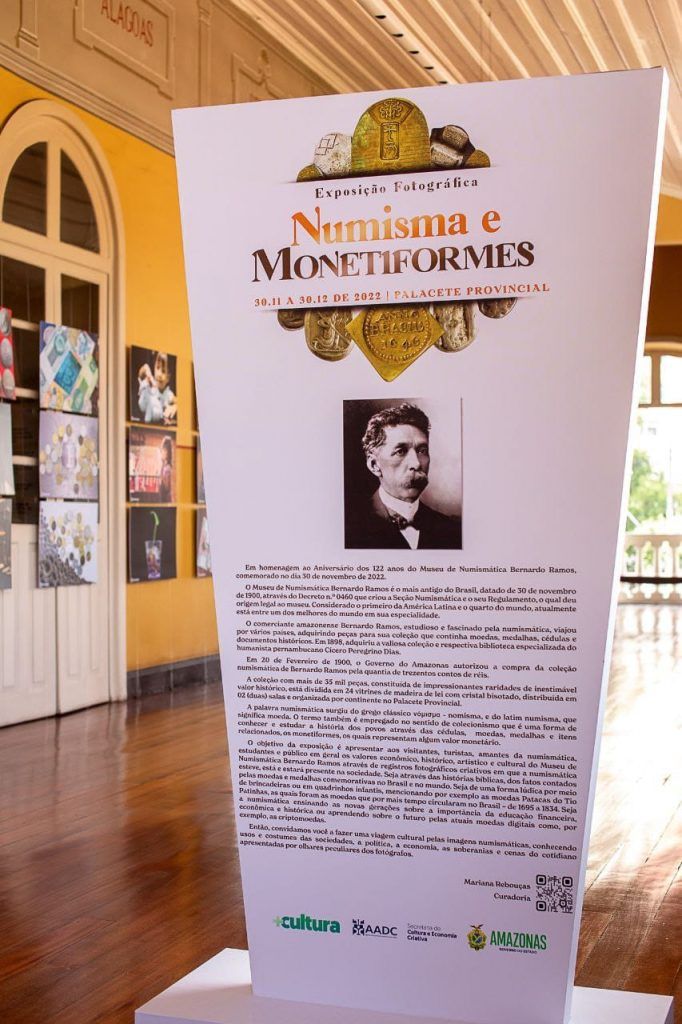 A outra mostra no espaço cultural da Heliodoro Balbi, é a exposição “Numisma e Monetiformes”. Registros fotográficos revelam o valor econômico, histórico, artístico e cultural do Museu de Numismática Bernardo Ramos, instalado nas dependências do Palacete, e que reúne um acervo de mais de 35 mil peças, entre moedas, medalhas, cédulas, máquinas registradoras e outras. A mostra é uma homenagem ao aniversário dos 122 anos do museu e tem a curadoria de Mariana Rebouças.