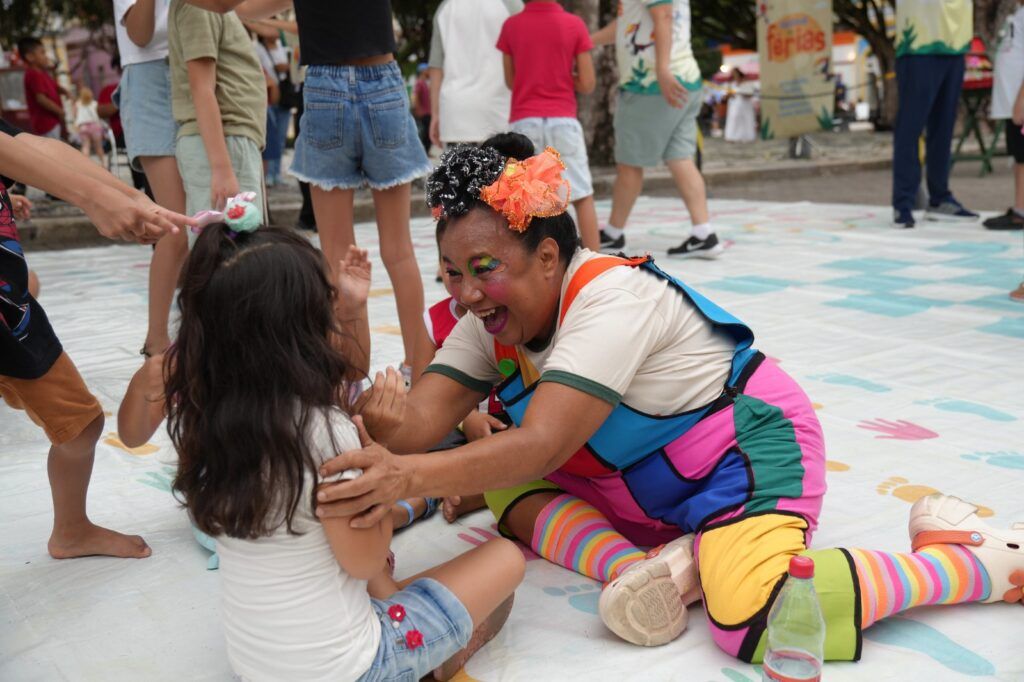 Após o circuito cultural, a programação seguiu no Largo de São Sebastião, com brincadeiras populares que estimulam a interação entre as crianças, os familiares e o público que circulava pelo local. As atividades ajudaram a resgatar brincadeiras tradicionais, promovendo momentos de convivência e lazer ao ar livre.