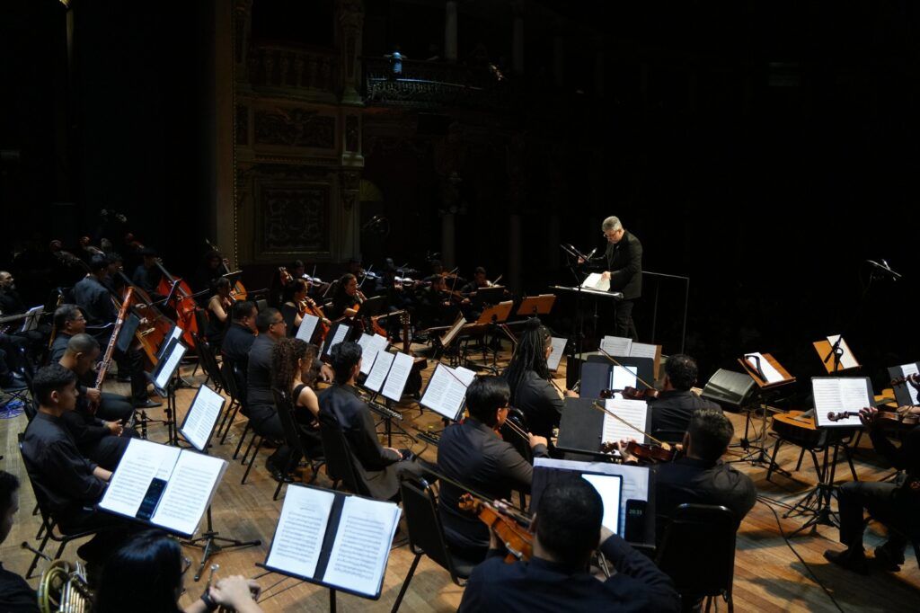 Encerrando as comemorações pelos 25 anos da Orquestra de Violões do Amazonas (Ovam), o Teatro Amazonas recebeu, na noite de quinta-feira (6), o concerto “Sacro II”, sob regência do maestro Davi Nunes. O espetáculo marcou o encerramento de um ciclo comemorativo que, ao longo do ano, destacou a trajetória da orquestra e sua contribuição para a cena musical amazonense.