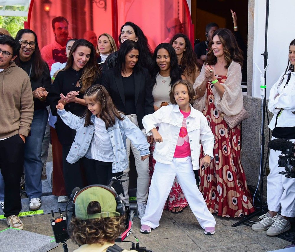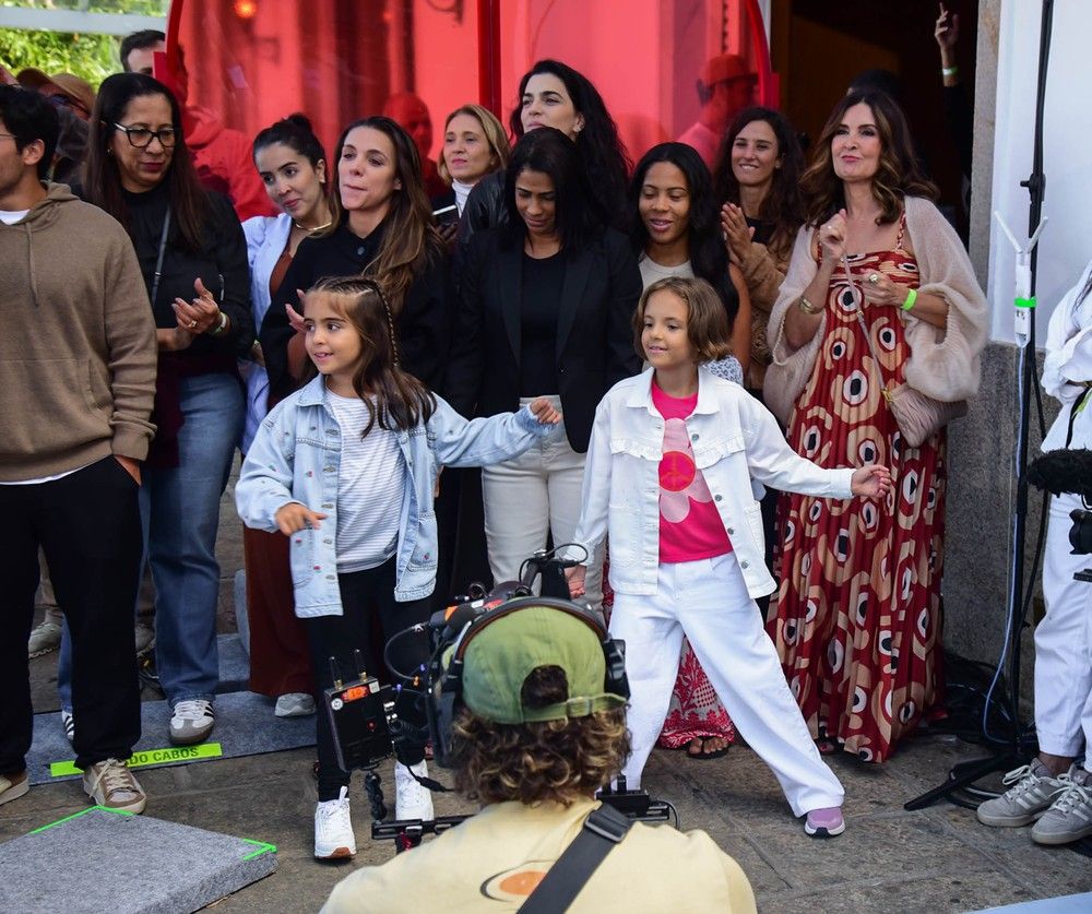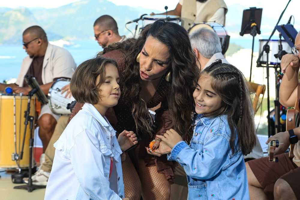 Marcelo Cady, de 15 anos, vestiu uma camisa com a logo do evento. As gêmeas da cantora, Marina e Helena, 7 anos, também foram à gravação da mãe e se acabaram de dançar.
