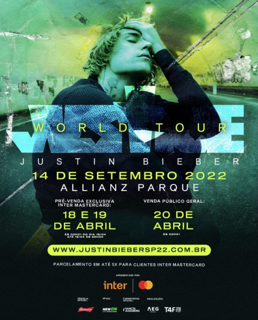 A tão esperada turnê “Justice World Tour”, de Justin Bieber, chega em São Paulo no dia 14 de setembro, no Allianz Parque.