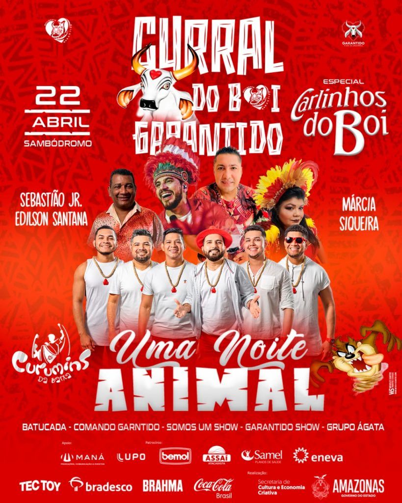 Para o show de sábado, o “animal” vai apresentar uma versão especial do show que ele tem apresentado por todos os eventos de que participa, inclusive em festas do interior do Estado. Aí, incluem-se toadas inesquecíveis do vasto repertório vermelho e branco, mas também as novas, do álbum 2023, “Garantido Por Toda Vida”.