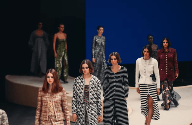 O desfile foi concebido pelo artista contemporâneo Xavier Veilhan e retomou elementos do mundo da equitação e do minigolfe para este espetáculo realizado no Grand Palais, em Paris.