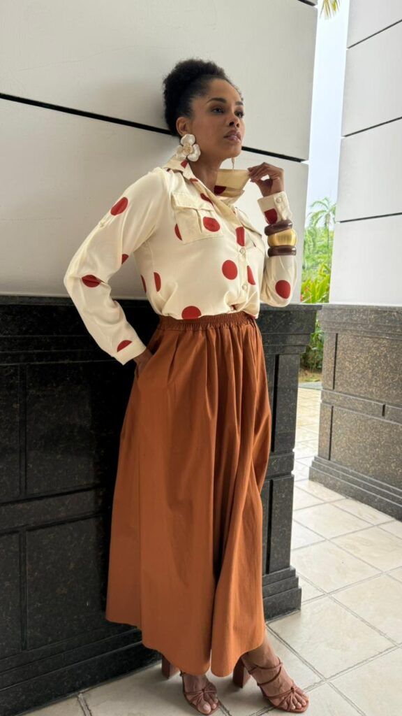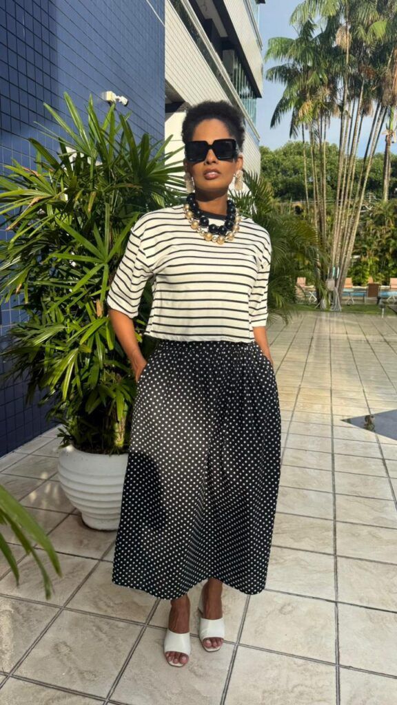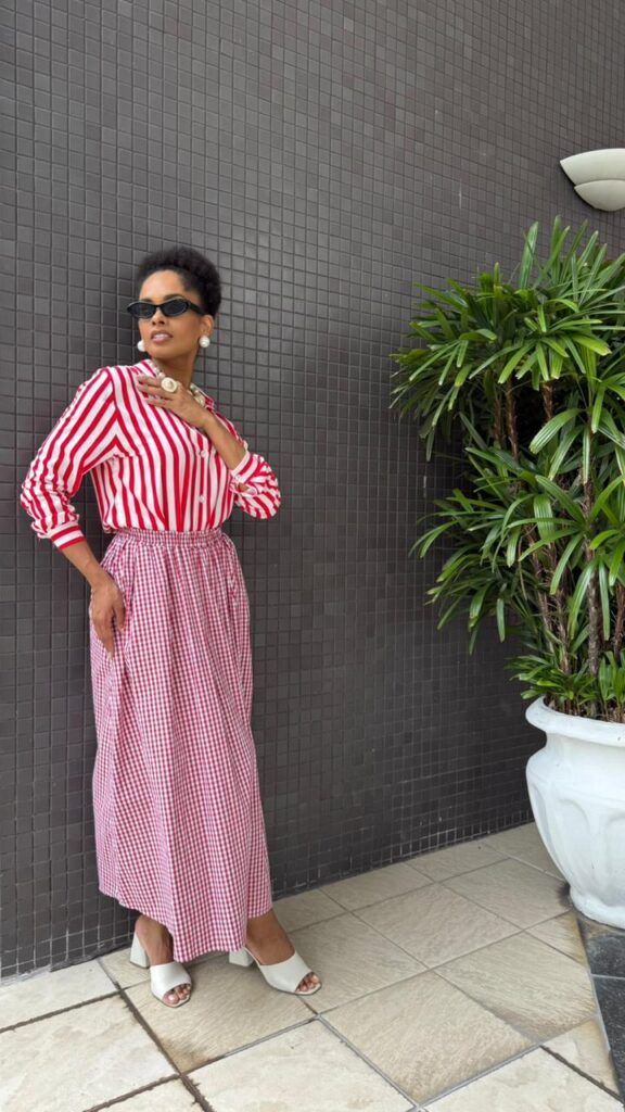 O ponto central da coleção é o resgate de elementos clássicos, como saias amplas e camisaria que incorpora listras (incluindo a trend navy) e poás, todos atemporais. Entre as peças chave da ‘Revival Fashion’, destacam-se as camisas estruturadas, com obreiras, e saias larga, que são longas e amplas, mas não balonês. Liza, que desenvolveu o nome da coleção em parceria com seu stylist, Edinho Serrao, explica a essência do projeto: “Eu fiz uma releitura dessa coleção, é por isso que é revível, para reviver esse mundo fashion”.