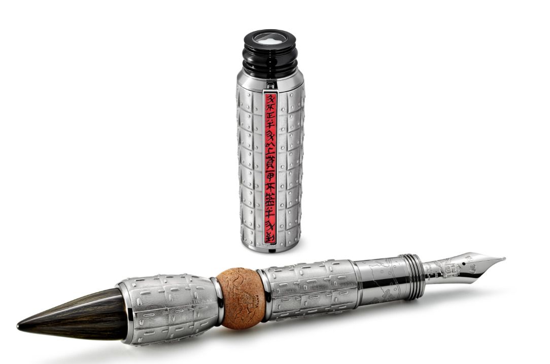 Considerada uma das maiores e mais puras artes, a caligrafia ou a arte da bela escrita é uma habilidade altamente respeitada na China, até hoje. Durante séculos, as pessoas se maravilharam com a estética dos personagens e a arte dos calígrafos. A Montblanc High Artistry, Um Tributo à Grande Muralha, com edições limitadas a 1, 5, 10 e 88 peças, homenageia essa forma de arte antiga. Além de a forma geral do instrumento de escrita ser inspirada em um pincel de caligrafia, a edição apresenta uma pena curva com uma ponta que tem um ângulo de 45 ° que permite criar linhas de diferentes espessuras, em vários ângulos. Apresentando uma nova tecnologia, usada pela primeira vez pela Montblanc, a pena de ouro maciço de 18K feita à mão é adornada com um relevo 3D da Grande Muralha.