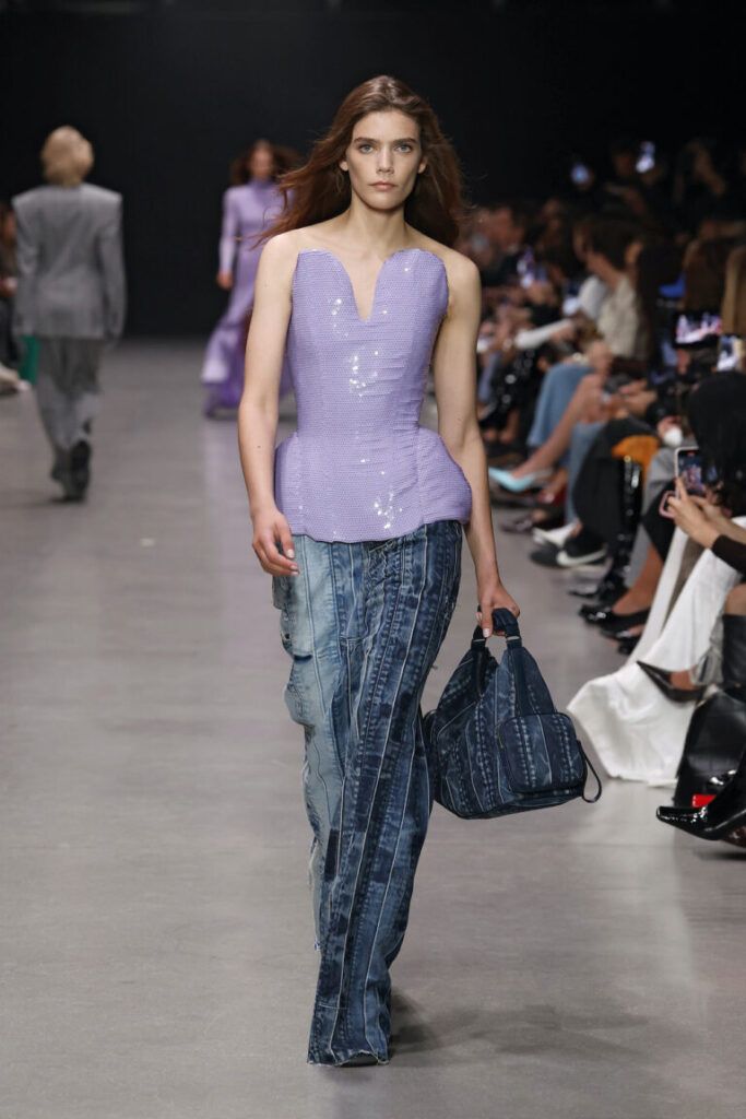 McCartney apresentou soluções tecnológicas inéditas, como o FEVVERS, uma alternativa vegetal às penas, e o PURE.TECH, tecido programável capaz de absorver poluentes do ar.