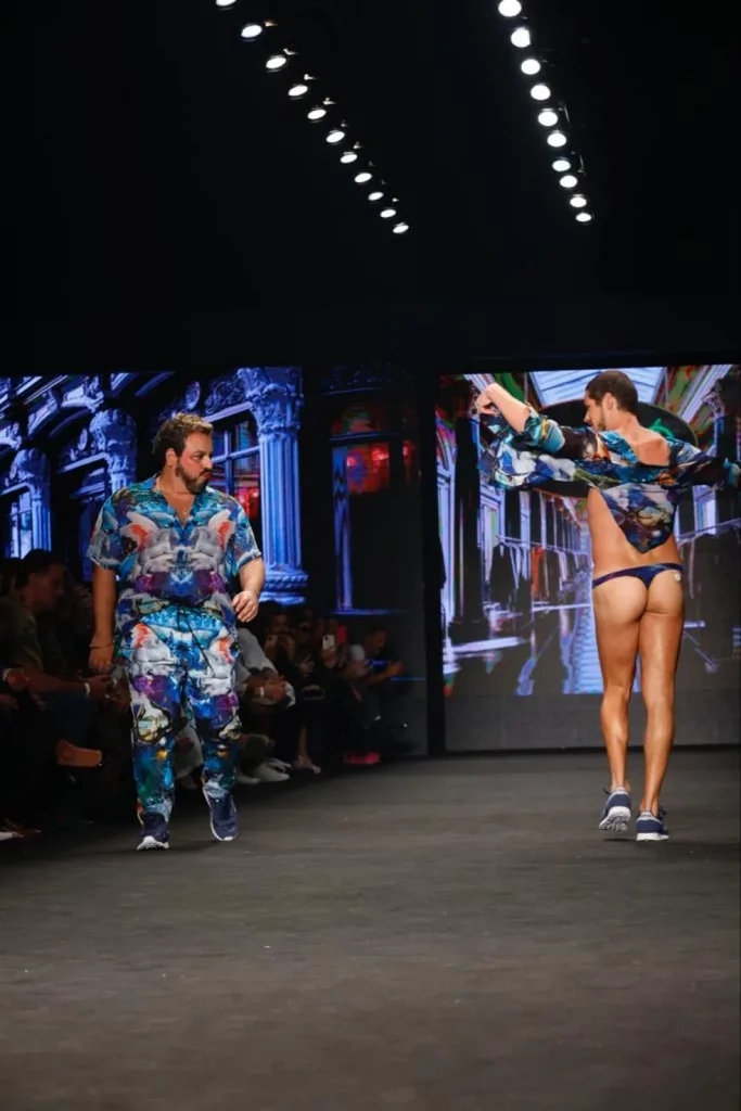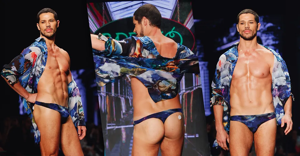 José Loreto roubou a cena no SPFW 2023, na noite de sexta-feira (26), ao desfilar com sunga fio-dental para a grife The Paradise, que trouxe para a passarela a nostalgia dos anos 1970 e 1980. O ator atravessou a passarela do evento de moda com o look provocante e animou o público com sua performance.