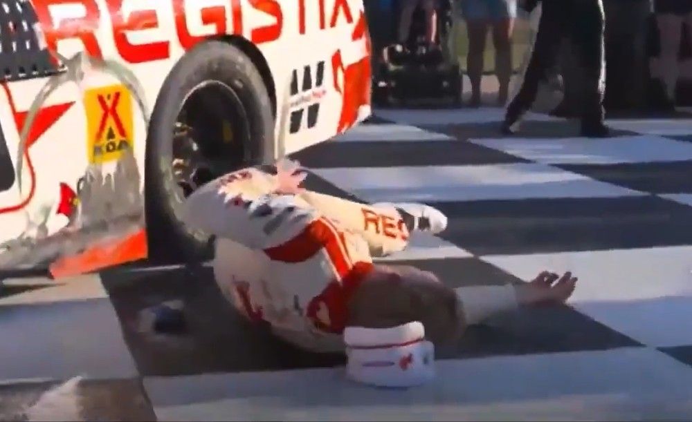 Na comemoração, Zilisch caiu de cabeça no chão, precisou ser internado e fraturou a clavícula, lesão que o deixa de fora da prova deste domingo em Watkins Glen, tradicional circuito no estado de Nova York.