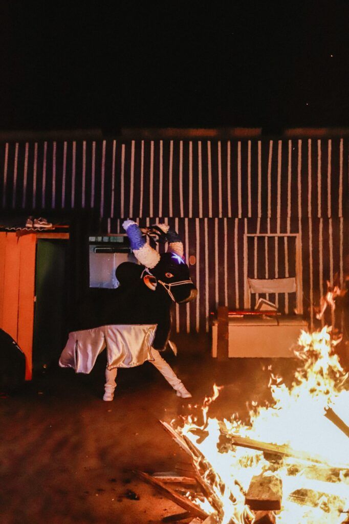 A brincadeira de boi também passou pela Cordovil, outro logradouro que carrega história e famílias caprichosas. A brincadeira passou na frente de casa de Ana Zilza Lopes, 76 anos, torcedora apaixonada pelo Caprichoso. Ela disse ficar feliz em receber o amado boi em casa.