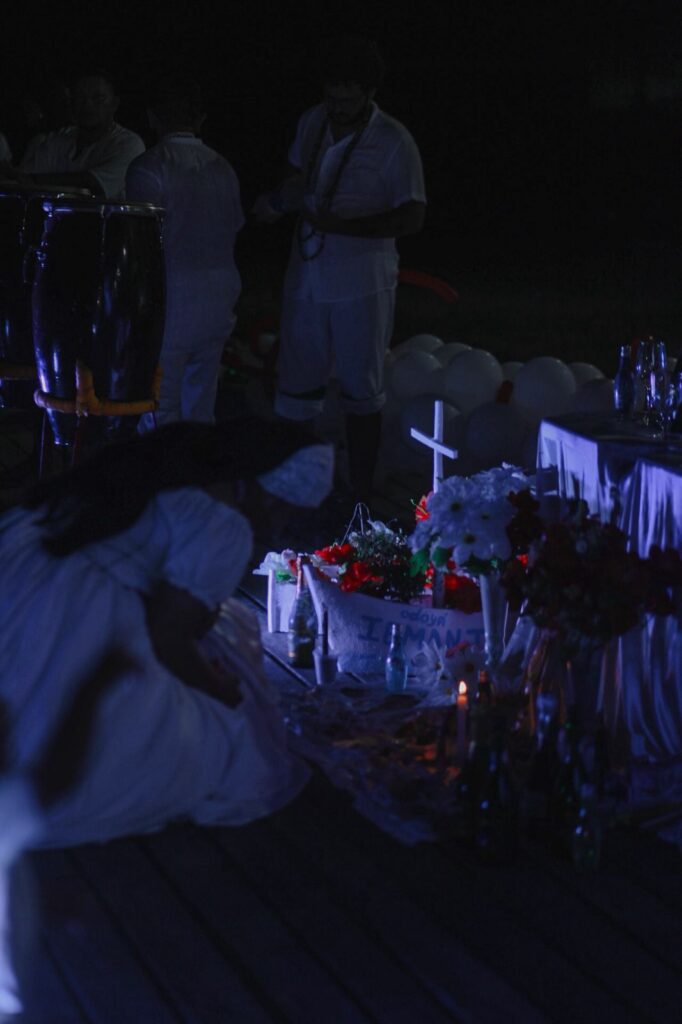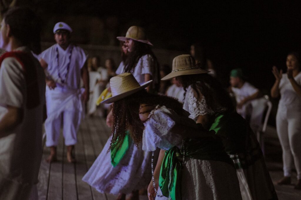 A homenagem à Rainha do Mar, também reconhecida como a grande mãe das águas e dos orixás, foi marcada por cantos, agradecimentos e manifestações de espiritualidade, em um gesto simbólico de acolhimento e valorização das tradições afro-brasileiras dentro da Associação Folclórica Boi-Bumbá Garantido.
