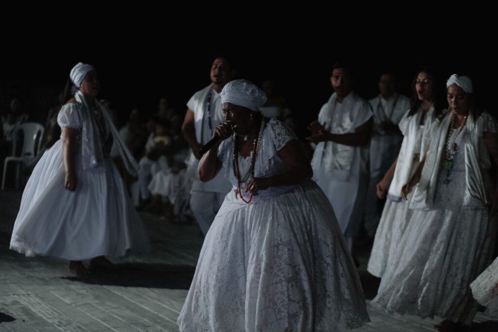 Durante a celebração, a líder religiosa Mãe Bena destacou o significado espiritual do momento e a gratidão do terreiro pela acolhida da nação vermelha e branca. “Hoje é um grande agradecimento em homenagem à nossa mãe Yemanjá. Quando se fala em Yemanjá, a gente fala de todas as nossas senhoras, que representam proteção, luz e harmonia. Yemanjá é uma grande mãe, é a mãe que traz os orixás a trabalho à terra, e nós estamos aqui para agradecer”, afirmou.
