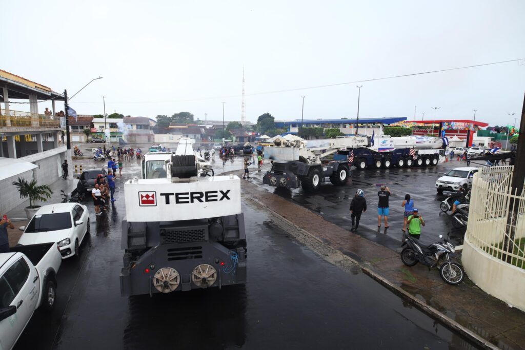 Debaixo de chuva, a logística do Boi Caprichoso para o Festival de Parintins 2025 começou a ganhar forma no último sábado (14) com a chegada dos guindastes que serão responsáveis pela montagem das grandes estruturas do espetáculo “É Tempo de Retomada”. Os equipamentos desembarcaram pela manhã e já estão posicionados na área de concentração do Bumbódromo.
