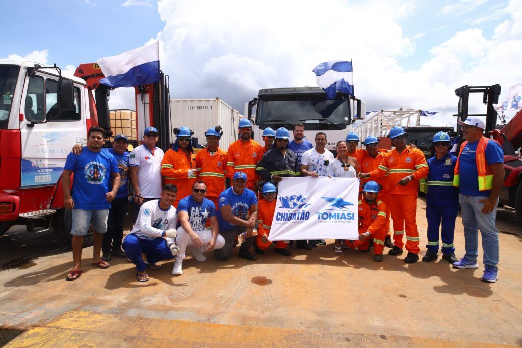O presidente do Boi Caprichoso, Rossy Amoedo, acompanhou de perto o desembarque dos equipamentos e destacou a importância da estrutura para o espetáculo. “Esses grandes maquinários vão estar na concentração, na montagem do boi. O nosso boi está muito grande, trouxemos equipamentos a mais e trouxemos aquele que vai nos ajudar, sem dúvida nenhuma, a trazer esse título para a Francesa, para o Palmares, para a nação azul e branca”, declarou.