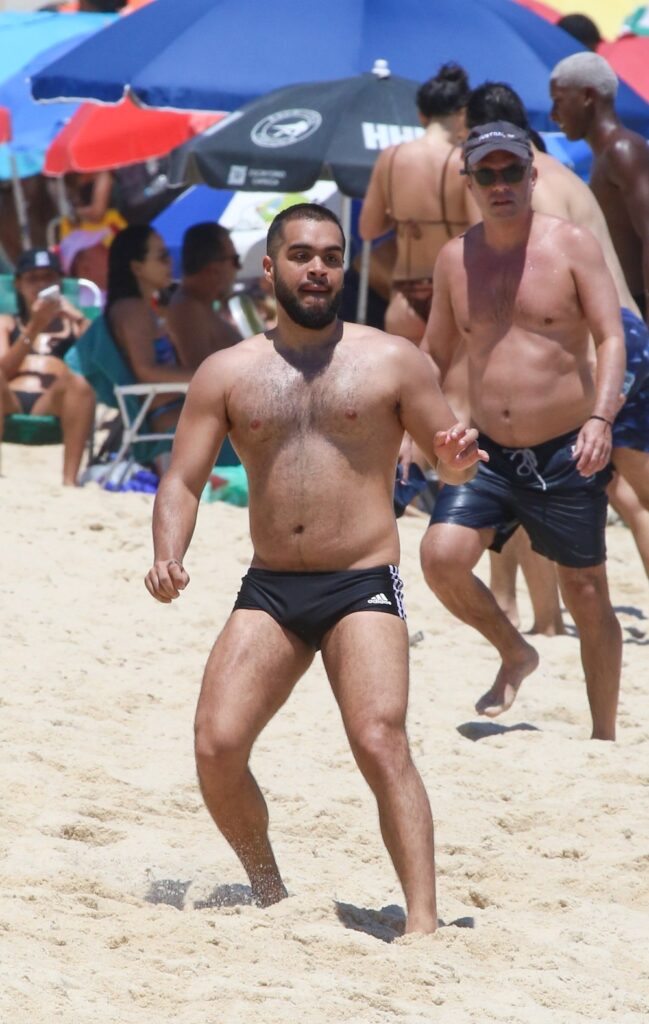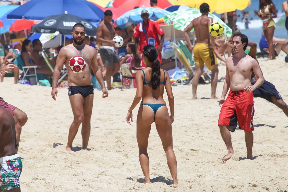 Os dois foram clicados jogando altinha na praia, na tarde da última quinta-feira (25), aproveitando o feriado e o calor carioca.