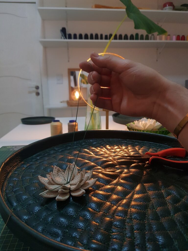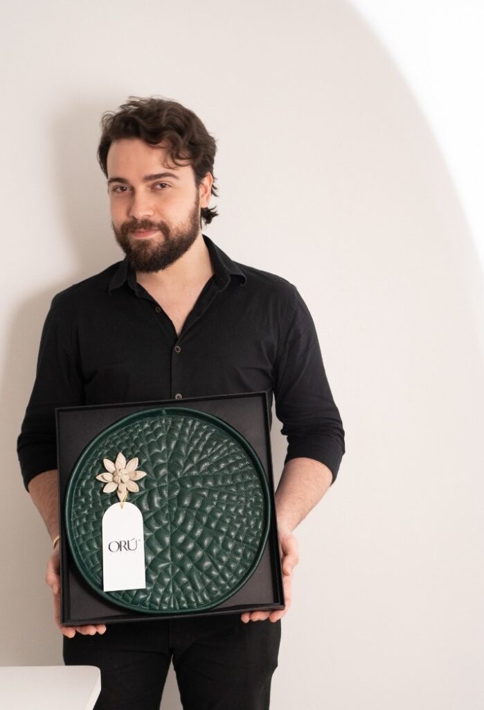 Definido como “design botânico em couro matelassado”, o Studio Orú desenvolve suas peças a partir de um processo minucioso, onde o tempo é tratado como o verdadeiro luxo. Conduzido pela observação da natureza, o couro é trabalhado em relevos precisos, ganhando texturas que reinterpretam a flora em objetos que transitam entre o utilitário e o artístico.