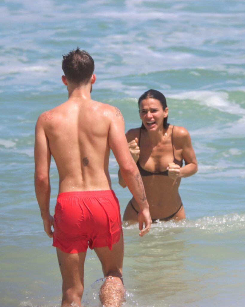 Neste sábado (25), os dois foram flagrados na praia de São Conrado, zona sul do Rio de Janeiro. Bruna e João apareceram conversando na areia e depois aproveitando o mar.