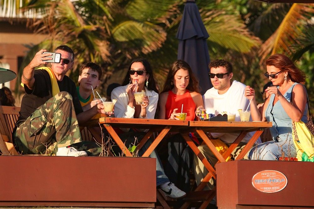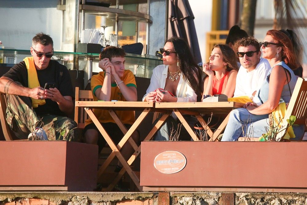 Dua Lipa está aproveitando o Rio de Janeiro. Nesta quarta-feira (19), a cantora passou a tarde em família em um quiosque em Ipanema, na Zona Sul carioca.