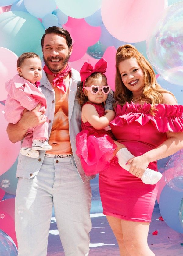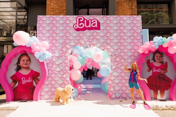 A família comemorou o novo ciclo da irmã de Ravi com uma celebração no tema Barbie Sereia, e os convidados usaram rosa para combinar com o evento.