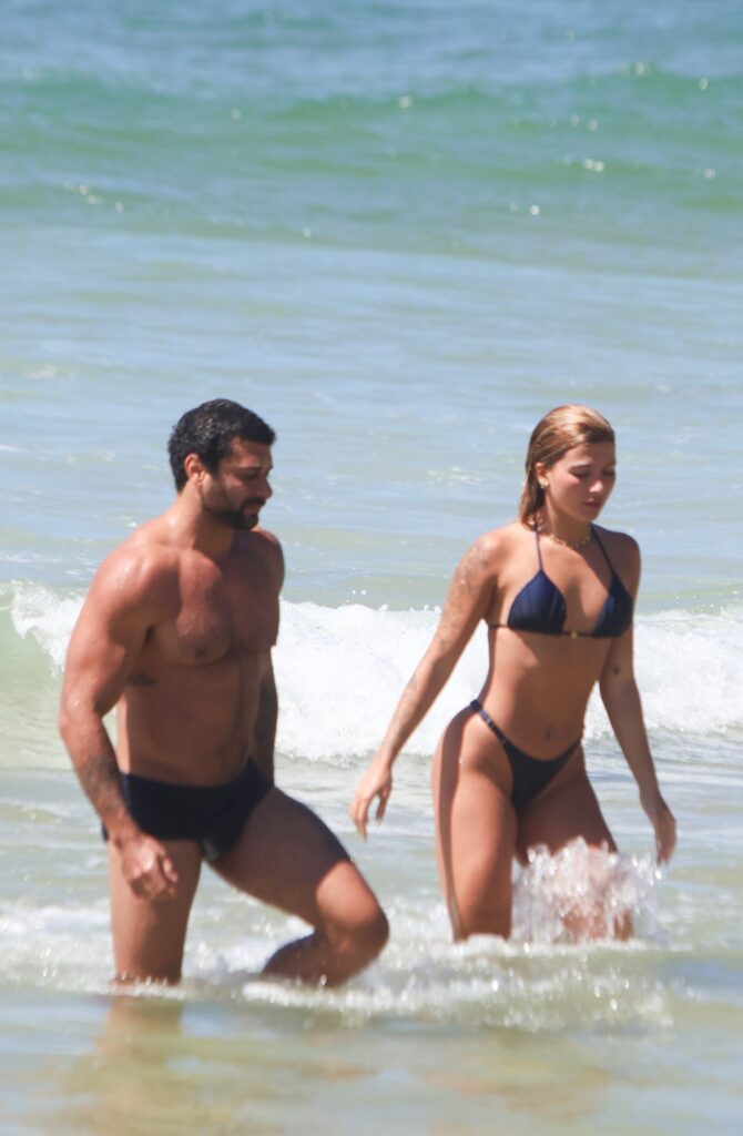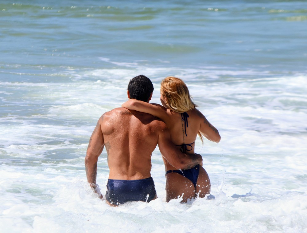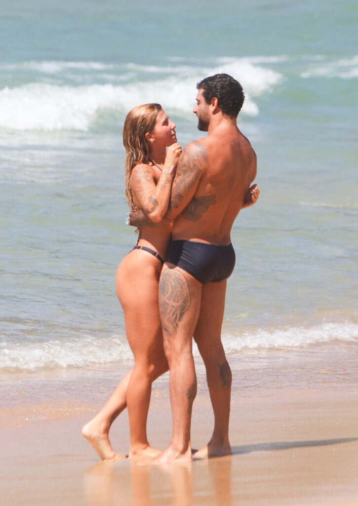 Jesus Luz foi flagrado aos beijos com a nova namorada, a bailarina Rafaela Mesquita, de 22 anos, na praia do Leblon, no Rio de Janeiro, nesta terça-feira (23).
