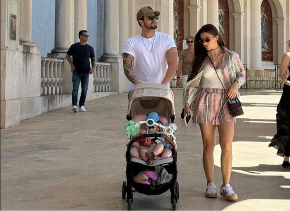 Luan Santana passeia com Jade Magalhães e a filha, Serena